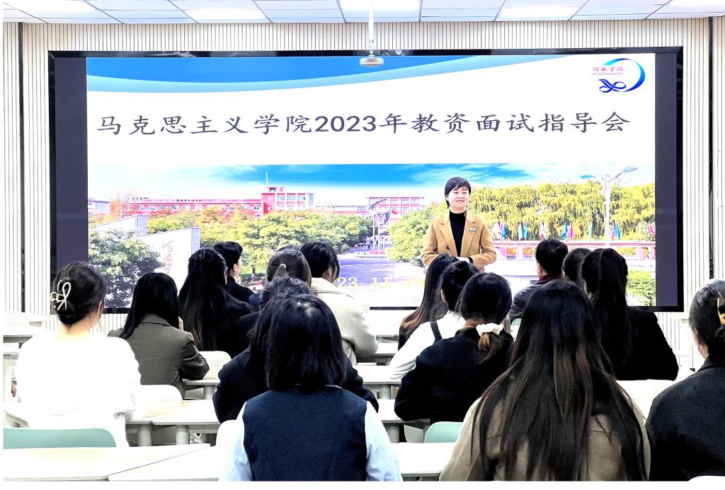 为推进学院师范专业认证工作,提高学生教学水平和实践能力,帮助学生备考教师资格证面试,马克思主义学院邀请张掖育才中学正高级教师杨莉,张掖市思想政治理论课名师工作室主持人、张掖市实验中学郎雪鹰老师为学院高年级学生做了2023年教师资格证面试辅导报告。