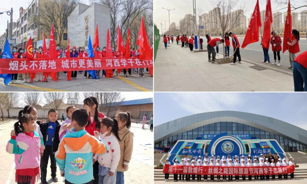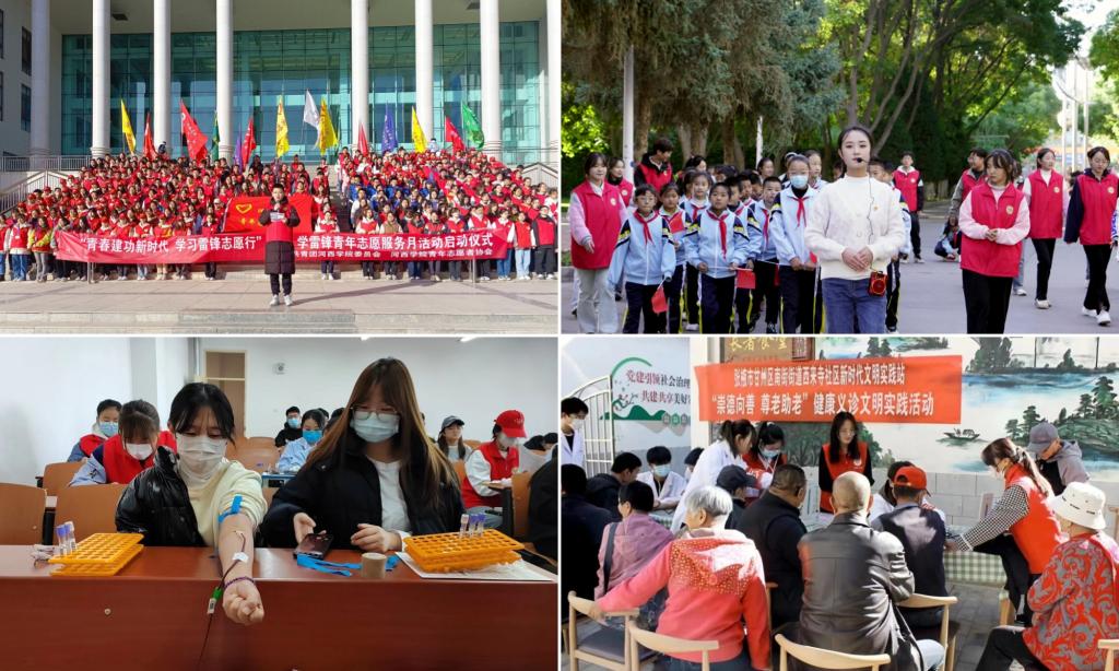 在校内,开展“青春建功新时代 学习雷锋志愿行”升旗仪式暨3·5学雷锋青年志愿服务月系列活动;全校各级团学组织围绕“青春建功新时代 学习雷锋志愿行”开展主题团日活动,第一时间组织学习习近平总书记对深入开展学雷锋活动作出的重要指示,收听收看共青团甘肃省委组织开展的“学雷锋主题宣讲”报告会;举办“学习二十大 青春志愿行”“无偿献血递爱心 关爱生命心连心”无偿献血活动,共有900余人参加献血,献血99600毫升;在文明校园的创建中,积极倡导广大师生创建“无烟校园”,组织志愿者进行文明劝导和清理清理校园烟头行动等;在校外,800余名志愿者与民乐县未成年人保护中心联合开展“甘露行动”关爱留守儿童志愿服务活动;20名青年志愿者与张掖市救助管理站(市未成年人社会保护中心)的35名困境儿童结对帮扶开展了“奋进新征程 同心护未来”主题研学活动;50余名志愿者赴天祝县朵什镇开展“好伙伴·共成长”关爱留守儿童结对帮扶志愿服务活动;1200多名青年志愿者助力张掖市创建全国文明城市工作,以“烟头不落地 城市更美丽 河西学子在行动”为主题,连续4天对甘州区25个主次干道、交通路口、主要商业大街、公共场所、公园、景区景点的垃圾、烟头、杂物等进行彻底清理,助力全国文明城市创建;在第十一届敦煌行·丝绸之路国际旅游开幕式上,90余名优秀青年志愿者参与志愿服务,圆满完成各项工作,青年志愿者成为旅游节一道靓丽的风景线。
