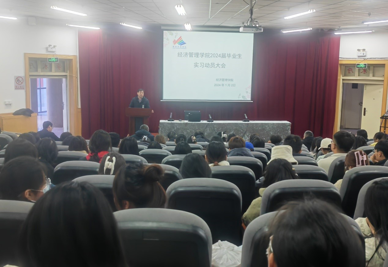 1月2日,经济管理学院在学术报告厅召开了2024届毕业实习动员大会。学院领导、学工办、班主任、实习带教老师、2024届199名毕业生参加了会议。