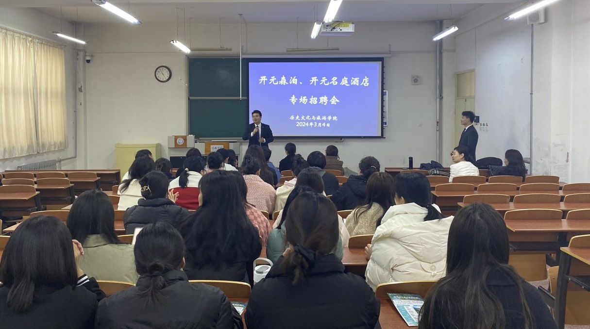 为促进2024届毕业生高质量充分就业,拓宽毕业生就业渠道。2月29日至3月5日,历史文化与旅游学院分别与花园饭店(上海)、开元森泊度假乐园、德清莫干山地信开元名庭大酒店、甘肃幸福旅游集团有限公司等用人单位开展毕业生专场招聘会。历史文化与旅游学院负责人、毕业班班主任、辅导员、2024届、2025届毕业生参加了招聘会。