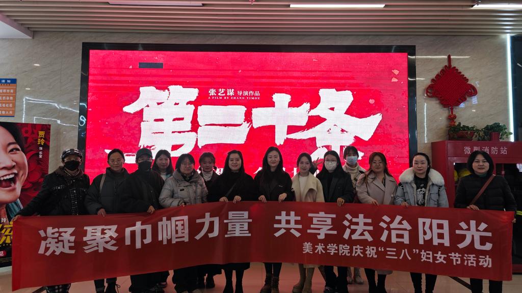 为庆祝国际妇女节,丰富美术学院女教职工的文化生活,美术学院于3月8日组织“凝聚巾帼力量,共享法治阳光”主题观影活动,全员女教职工参加活动。