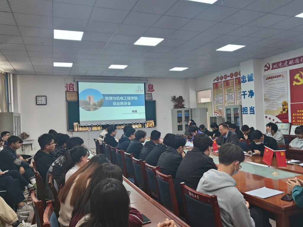 为加强学院物理学专业毕业生的教育、管理,创造条件为毕业生谋取多渠道就业。3月21日下午,物理与机电工程学院召开物理学专业毕业生就业推进会。学院负责人、毕业班班主任、辅导员及物理学专业毕业年级学生70多人参加了会议,会议由学院负责人主持。