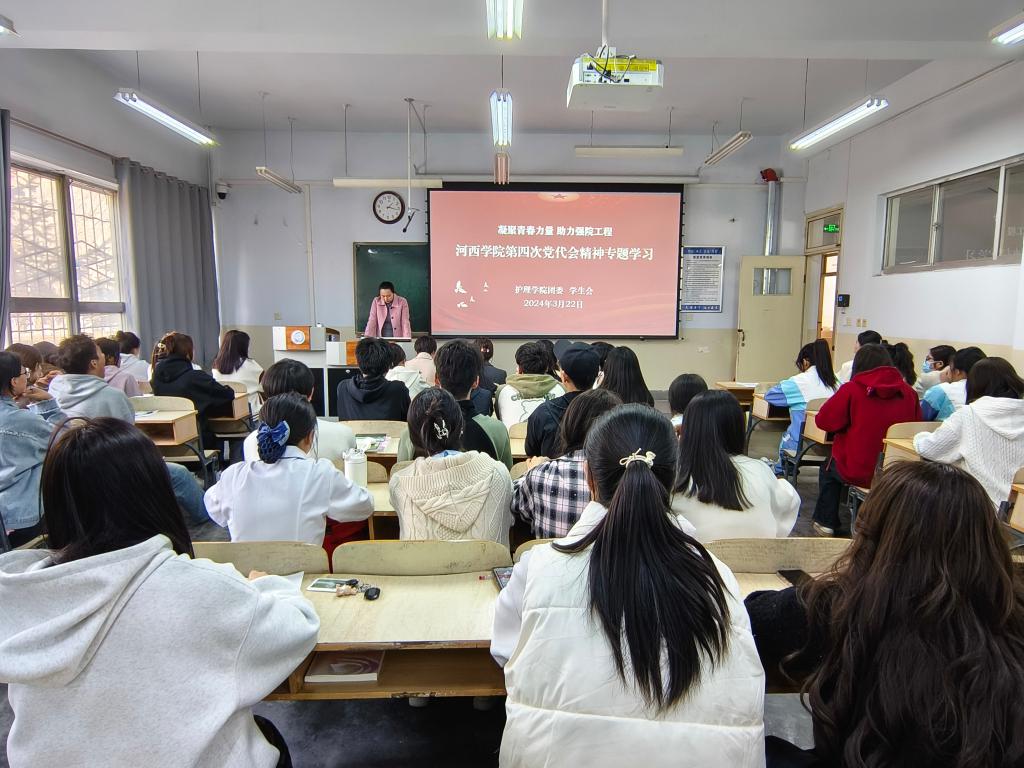 3月22日中午,护理学院团学组织召开学校第四次党代会精神学习会,全体辅导员、团委、学生会组织工作人员集体学习。
