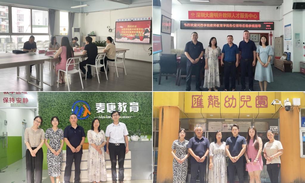 此次访企拓岗共走访了深圳雏鹰教育集团、大唐明升教育集团及广州同仁教育三家教育集团旗下七家幼儿园、中小学及托管机构。在走访过程中,三家集团负责人分别介绍了公司的发展情况、岗位设置、用人需求、薪资待遇等,他们表示希望通过本次交流,与学院在人才培养等方面不断深化合作。学院负责人介绍了学校的发展历程和办学理念,并指出,我国进入高质量发展阶段,校企深度融合、产教深度融合是大势所趋,希望双方能加强交流合作,定点定向为企业输送人才,同时进一步促进学生高质量就业。