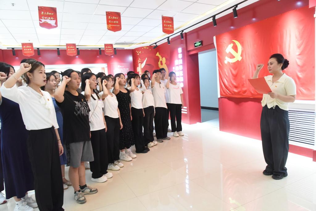 期间,在展厅举行了新发展党员宣誓暨党员同志重温入党誓词仪式。全体党员高举右手、面对党旗庄严宣誓,表达了对中国共产党忠贞不渝的坚定信念。