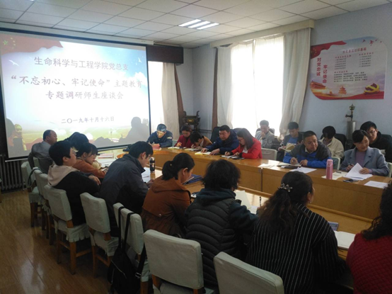根据校党委“不忘初心、牢记使命”主题教育专题调研工作要求,学院党总支及时制定学院调研方案,列出调研主题,确定责任人,通过调查问卷、实地考察、网络调查和访谈等形式,就党的基层建设、学科发展、教学管理、服务师生等主题内容进行了调研。为将调研工作推向深入,在梳理前期工作的基础上,召开了此次座谈会。