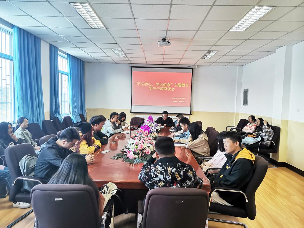 10月16日,信息技术与传媒学院召开“不忘初心、牢记使命”主题教育学生干部座谈会。学院班子成员、学工办老师、辅导员、学生干部共50余人参会。会议旨在坚持问题导向,查找和解决学生管理工作中存在的短板和问题,提高学生管理实效,进一步推进主题教育扎实开展。