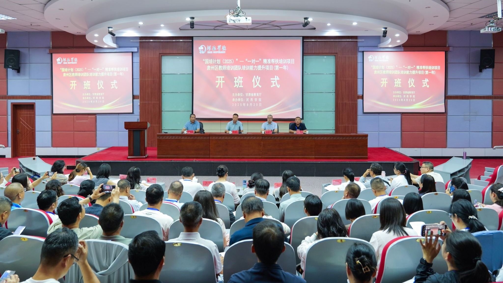 8月20日,学校承担的“国培计划(2025)” “一对一”精准帮扶培训项目肃州区教师培训团队培训能力提升培训班开班仪式在图书馆报告厅举行。甘肃省国培项目专家吕世虎,肃州区教育局、继续教育学院、我校学科负责人,甘州区4所帮扶中小学(幼儿园)负责人、班主任和培训学员110人参加了开班仪式。