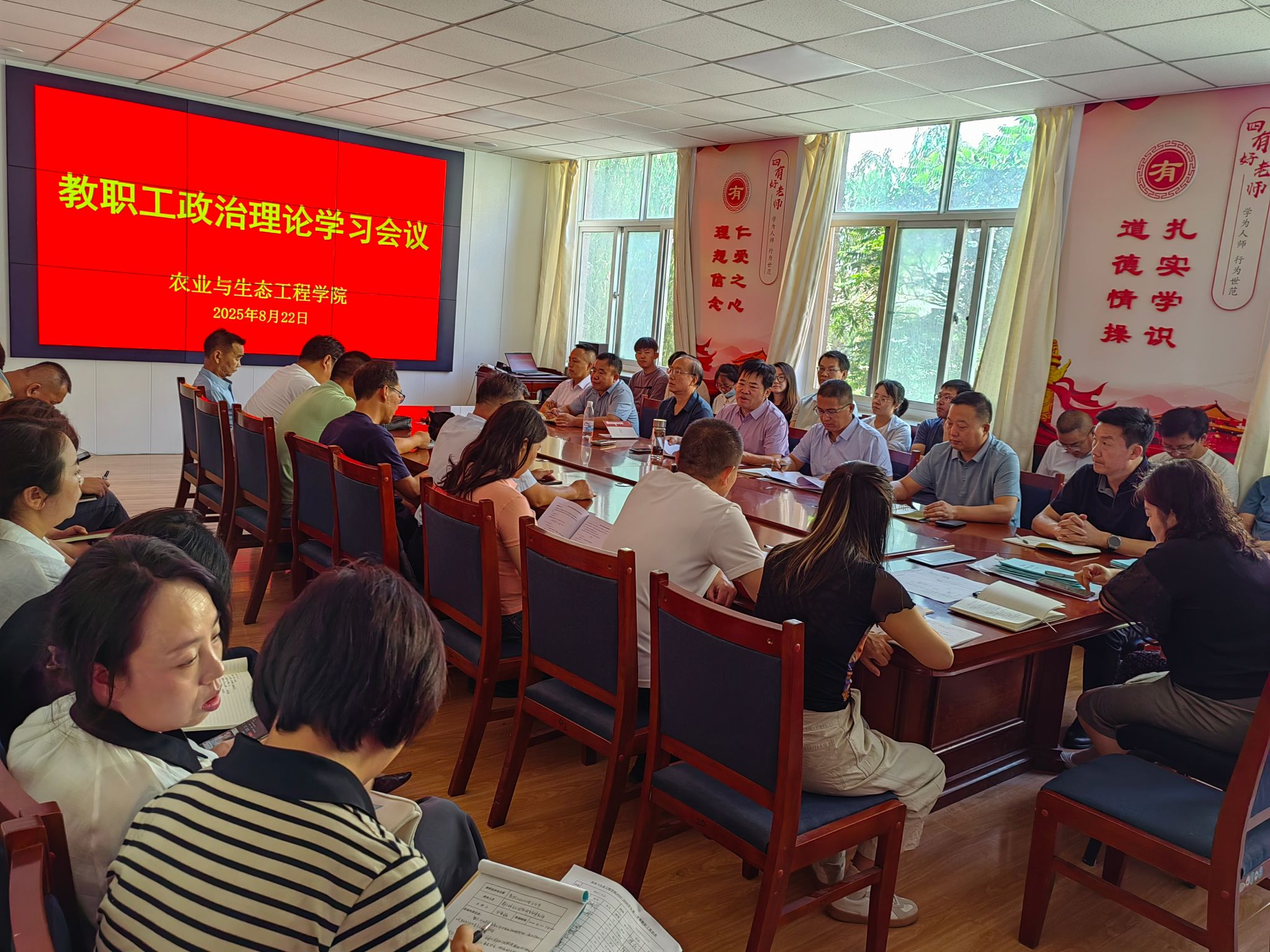8月22日,农业与生态工程学院组织召开教职工政治理论学习会,学院及科研平台全体教职工参加。
