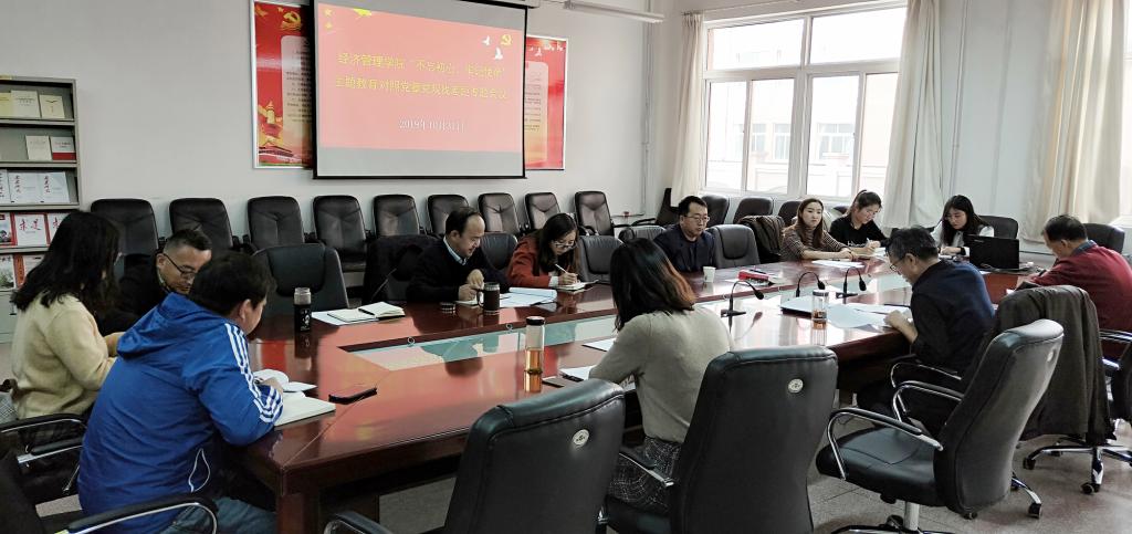 10月31日下午,经济管理学院党总支召开“不忘初心、牢记使命”主题教育对照党章党规找差距专题会议。学校第三巡回指导组到会指导,学院理论学习中心组成员和教研室主任、教师代表参加了会议,学院党总支负责人主持会议。