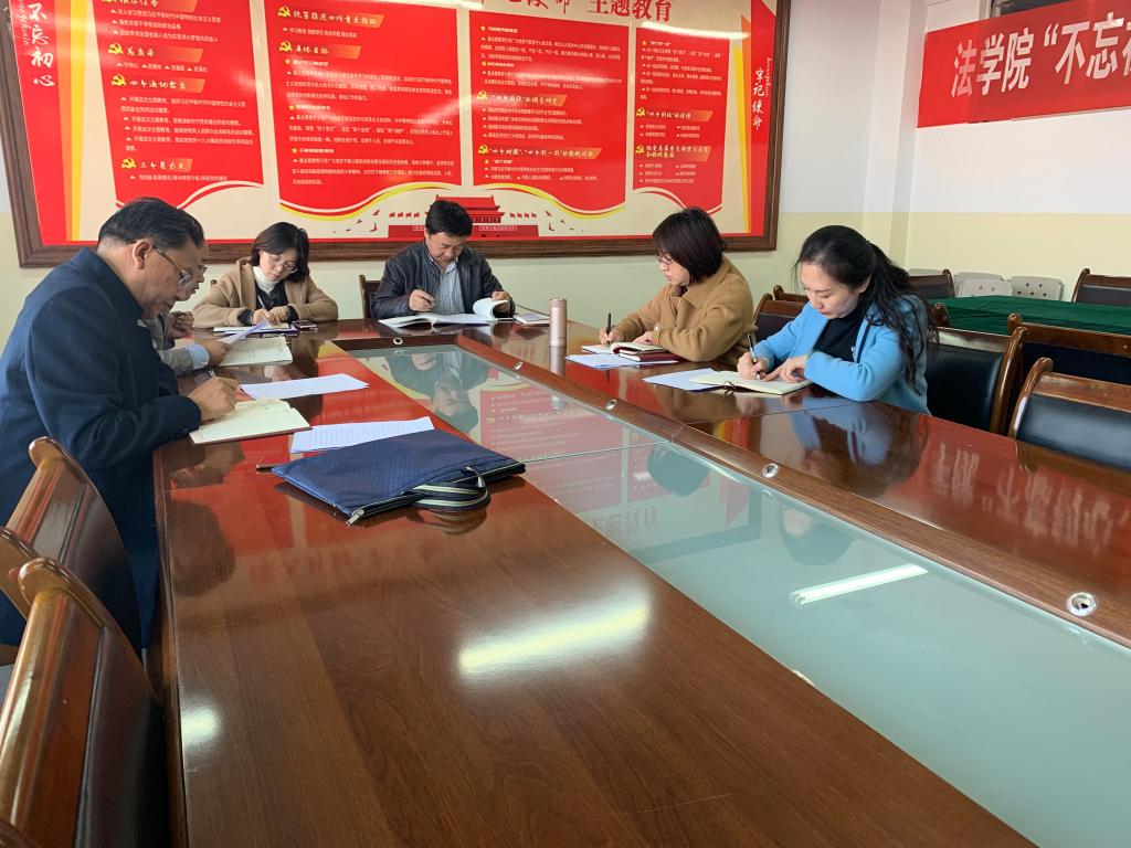 11月7日下午,法学院党总支召开理论学习中心组学习会,中心组成员交流了“不忘初心、牢记使命”主题教育自学成果。