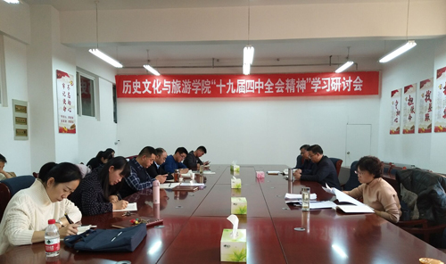 11月11日,历史文化与旅游学院党总支理论学习中心组召开理论学习(扩大)会议,深入学习贯彻党的十九届四中全会精神。中心组成员及全体党员参加了会议。