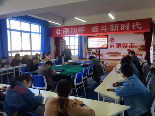会上,党总支负责人领学了党的十九届四中全会公报,作了题为《立足中国特色社会主义制度,实现“中国之治”——准确把握十九届四中全会精神内涵》的专题报告,从“党的十九届四中全会主题重大、事关根本,我国国家制度和国家治理体系具有显著优势,坚持和完善中国特色社会主义制度、推进国家治理体系和治理能力现代化的时间表和路线图,中国特色社会主义制度的图谱,深入贯彻党的十九届四中全会精神、开辟‘中国之治’新境界”等五个方面,就十九届四中全会精神进行了深刻解读。会上还学习了《新时代爱国主义教育实施纲要》。