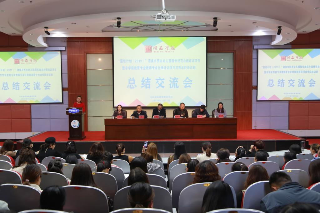 11月15日,我校在图书馆报告厅举行了“国培计划(2019)” 酒泉市民办幼儿园园长规范办园培训项目暨非学前教育专业教师专业补偿培训项目结业总结交流会。金沙、继续教育学院等部门负责人、班主任和全体培训学员参加了结业座谈会。