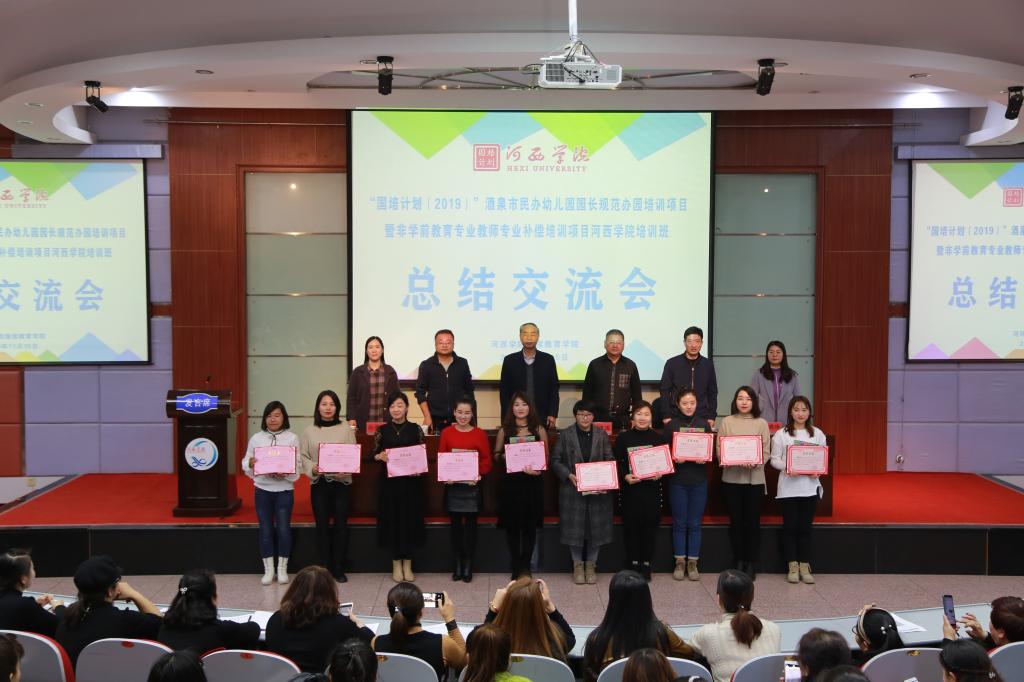 继续教育学院负责人对“国培计划(2019)” 酒泉市民办幼儿园园长规范办园培训项目暨非学前教育专业教师专业补偿培训项目的实施进行了全面总结,希望学员们借 “国培计划”这一平台,加强联系、增进交流、共同提高;要坚持学以致用、学有所用,将培训成果活学活用到日常幼教管理工作中,不断提高幼教管理工作水平;要牢固树立学无止境的终身学习理念,在工作中反思、在学习中提升,在幼儿园保教管理和保教过程中不断趋于规范化。