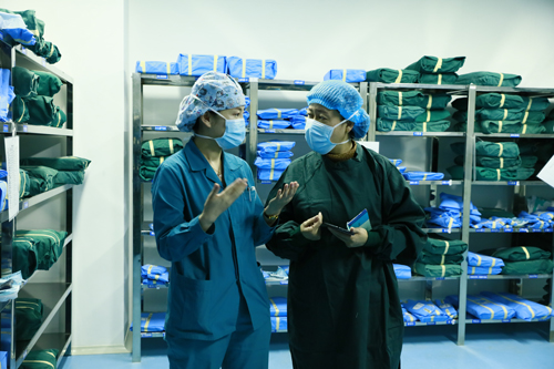 会上向高发旺一行详细介绍了附属医院的发展历程、专科建设、科研成果、人才培养等方面基本情况。高发旺一行参观了附属医院手术麻醉科、消毒供应中心、康复科和医务部、护理部等科室。在参观过程中,双方就医疗质量管理、护理质量管理、人事薪酬制度改革、医保管理、手术室和消毒供应中心管理进行了深入探讨。