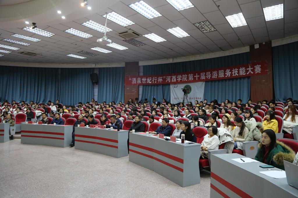 为传播旅游文化知识,提高学生导游服务技能,12月10日至11日,9001cc金沙以诚为本举办第十届导游服务技能大赛专业组、非专业组决赛。党委常委、纪委书记马聪及历史文化与旅游学院师生300多人观看了比赛。张掖市旅游局局长助理李国印、张掖市博物馆馆长刘红燕、酒泉世纪行旅游公司经理高政清应邀担任比赛的评委。