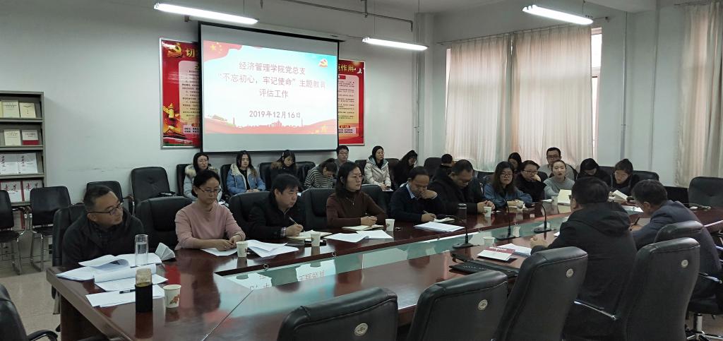 按照学校“不忘初心、牢记使命”主题教育领导小组的安排,12月16日,经济管理学院召开“不忘初心、牢记使命”主题教育评估测评会。学校第三巡回指导组、学院领导班子成员、教师党员代表、学生党员代表和教师群众代表参加了会议。