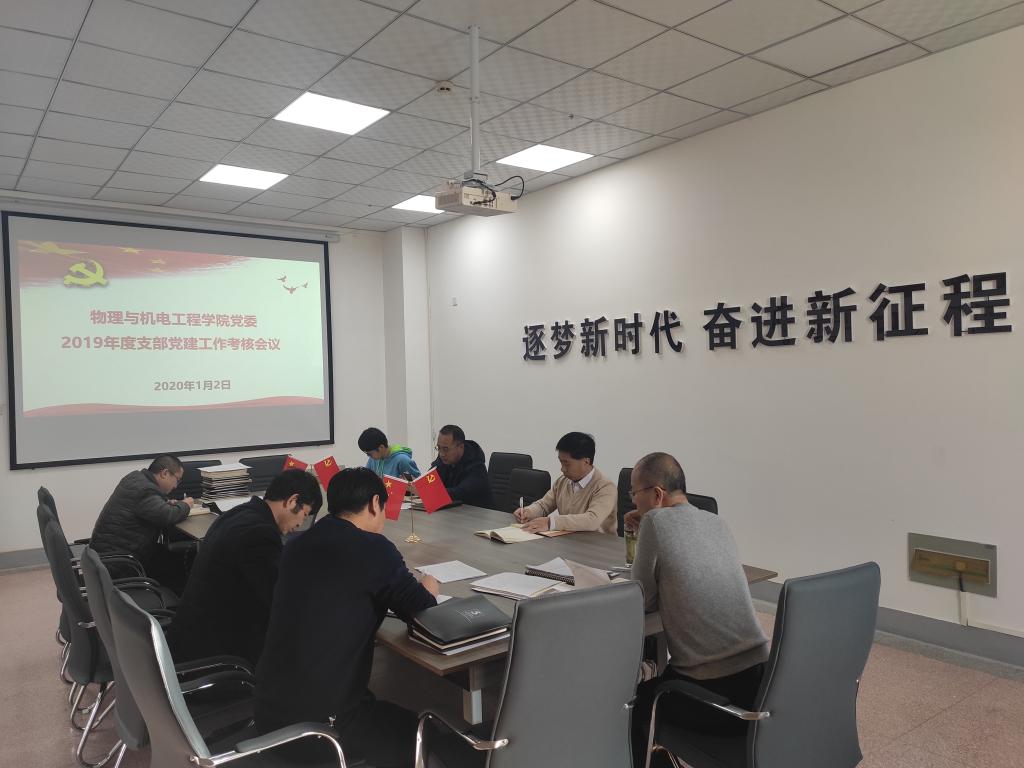1月2日下午,物理与机电工程学院党委在学院会议室召开2019年度支部党建工作考核会议。会议由学院党委负责人主持,学院党委委员、党支部书记参加了会议。