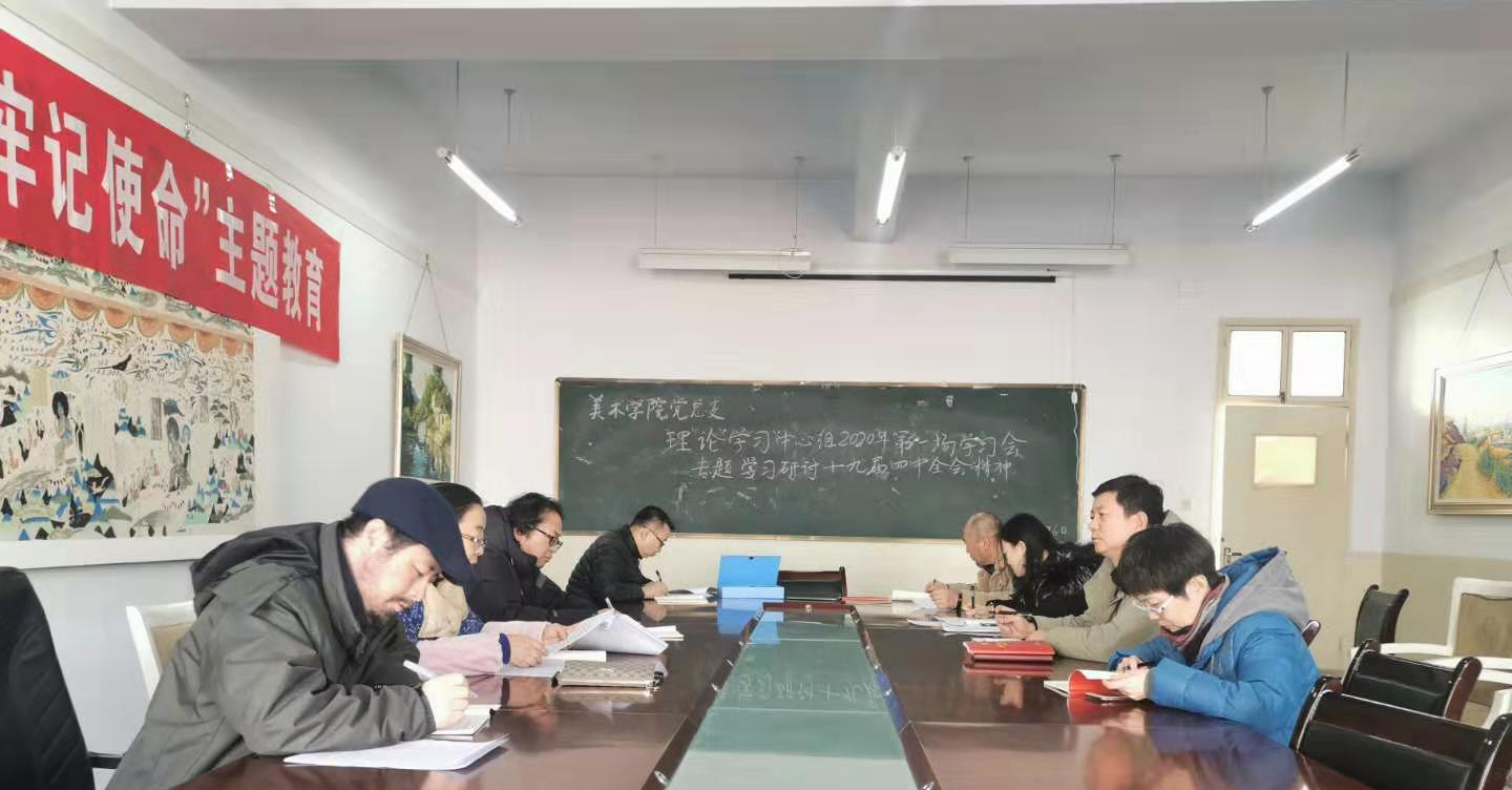 1月6日,美术学院党总支理论学习中心组专题学习党的十九届四中全会精神。党总支理论学习中心组成员、各党小组组长参加了学习。