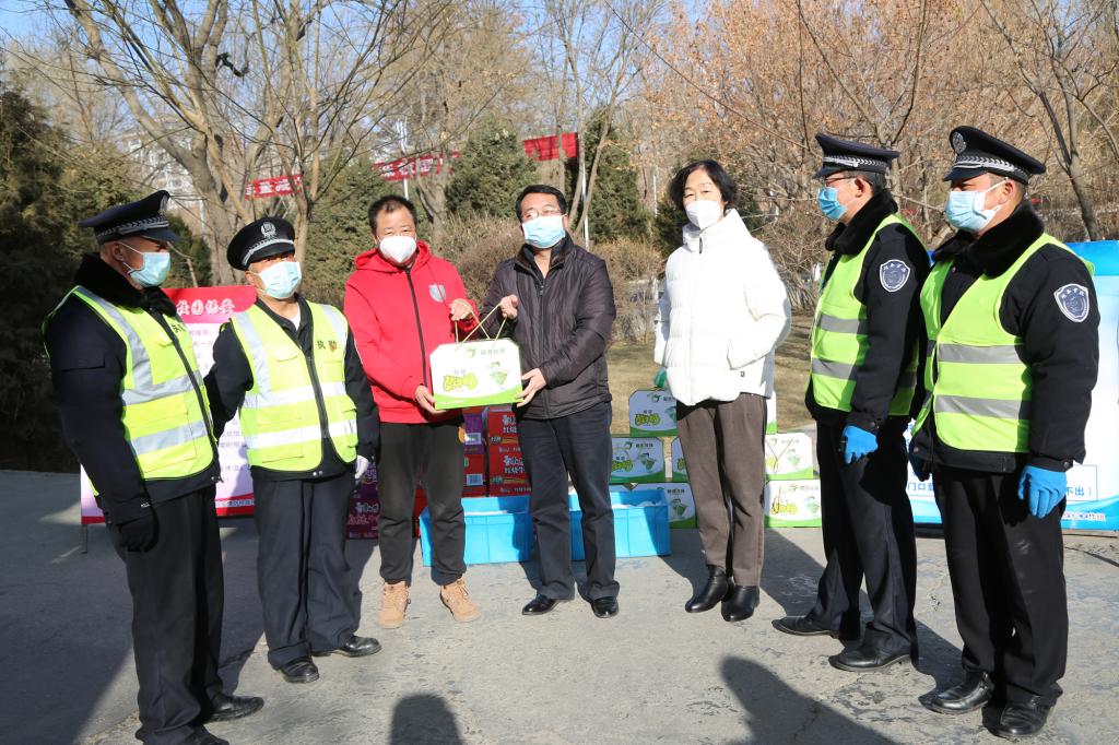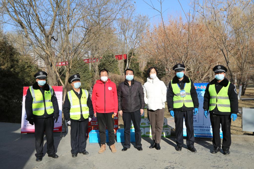 安稳部负责人对牛建国老师夫妇表达了敬意和感谢,并与大门口执勤的安保人员一同接受了捐赠。安稳部全体人员将更加忠于职守、依法履职,不负学校和教职工的重托,为防控疫情做出自己应有的贡献。