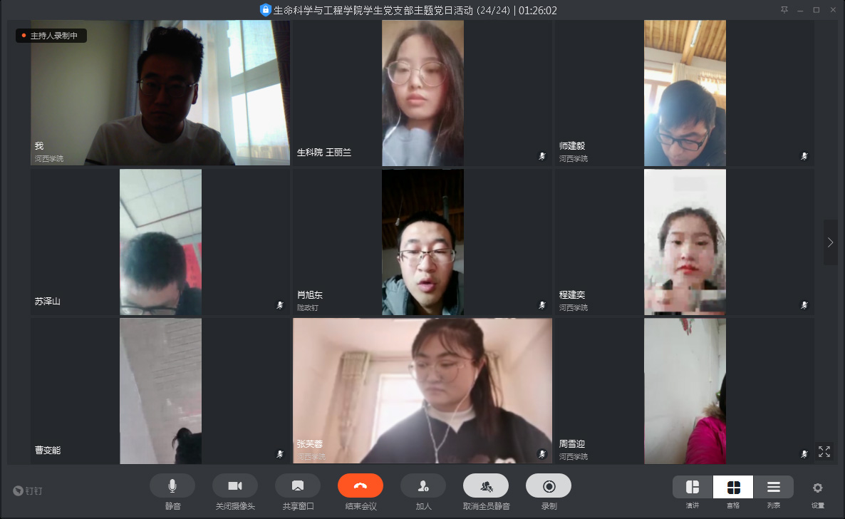 2020年2月20日,9001cc金沙以诚为本学生党支部全体党员开展以“武汉加油,战‘疫’必胜”线上主题党日活动,会议采取网络会议的方式进行。