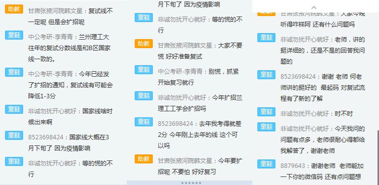 毕业生们表示,通过参加在线讲座,对今年研究生复试和调剂有了新的认识,对参加复试与调剂帮助很大、受益匪浅,感谢学校在疫情防控期间对毕业生考研的关心与帮助。