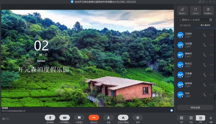 近日,历史文化与旅游学院分别与上海花园饭店、上海链家集团和杭州开元森泊度假乐园通过“陇政钉”平台联合举办2020届毕业生网络专场招聘会。上海花园饭店、上海链家集团和杭州开元森泊度假乐园的相关领导、历史文化与旅游学院党总支负责人、学工办主任、辅导员、毕业班班主任及2020届全体毕业生共190余人参加了招聘会。