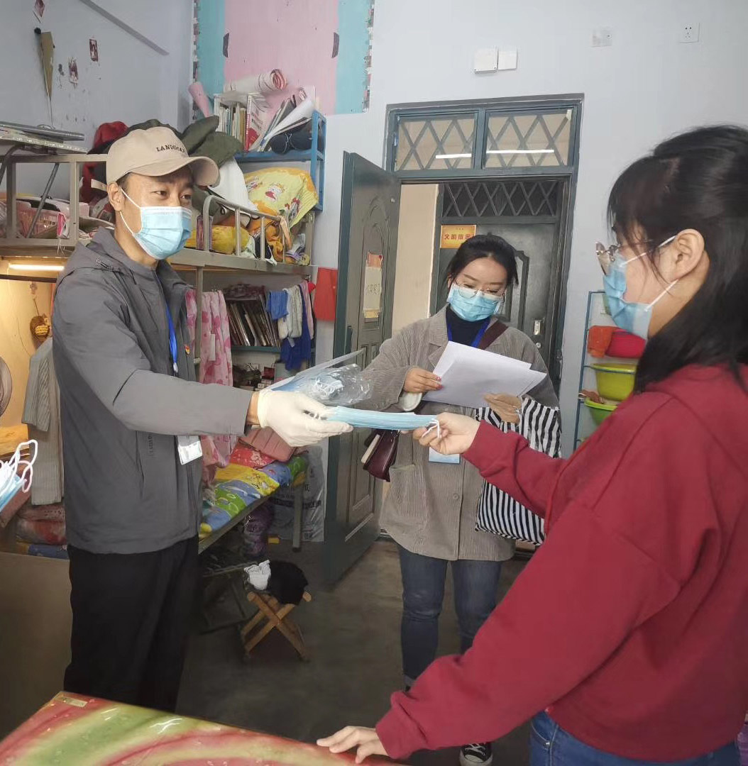 5月10日,毕业生返校后,学院组织辅导员老师进公寓,为返校毕业生送上暖心问候,并给44名家庭经济困难和少数民族学生免费赠送口罩,助力学生做好个人防护,积极战胜困难,让学生真切感受到学校的关怀与温暖,凝聚抗疫力量,坚定必胜信心。