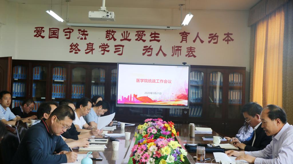 5月21日上午,医学院在行政楼四楼会议室召开统战工作会议,学院领导,各系部、各办公室主任、副主任,民主党派及无党派人士代表参加会议,会议由学院党委负责人主持。