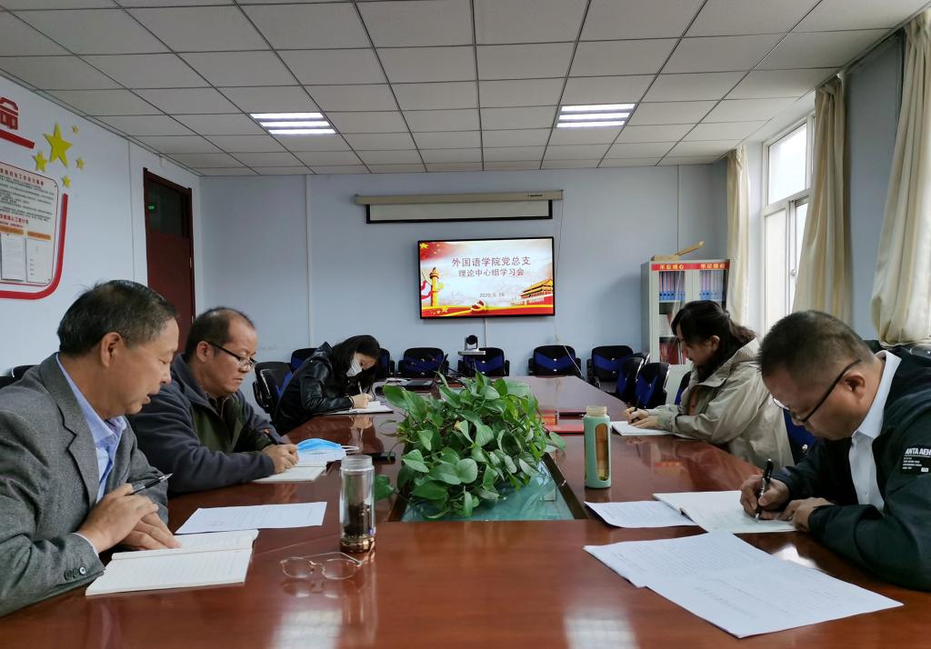 5月29日,外国语学院党总支召开了理论中心组学习会,深入学习了2020 年全国两会精神,传达了学校相关文件。会议由学院党总支负责人主持,中心组全体成员参加。