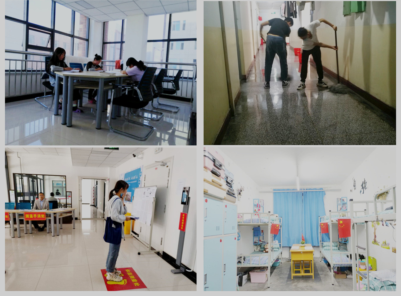 广大学生全员参与,细微处做起,落实一日三测体温制度、出入公寓测温制度;开展公寓公共环境卫生轮流值班清理,积极实施垃圾分类并及时“日产日清”,清理卫生死角,减少污染物的扩散及对环境的影响,做到公寓卫生整洁、通风良好。互相引导宿舍成员养成良好的环境卫生习惯,及时主动开展宿舍卫生清理,做到寝室环境 “七净”(地面干净、墙面干净、门窗干净、玻璃干净、桌椅橱干净、床铺干净、其他物品干净)、“七无”(无痰迹、无烟蒂、无乱挂、无蛛网、无酒瓶、无异味、无垃圾)、“七整齐”(桌椅摆放整齐,被褥折叠整齐,毛巾挂放整齐,书籍叠放整齐,鞋子摆放整齐,衣物挂放整齐、用具置放整齐)。同学们主动学习健康知识,树立健康理念,从日常生活点滴做起,以文明健康为荣,以不良生活习惯为耻,让好习惯像呼吸一样自然,树立人人追求和推崇文明健康生活的良好导向。