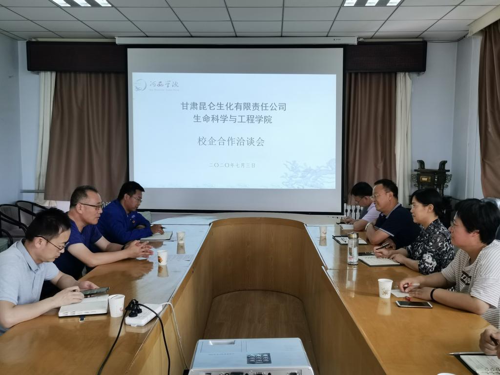 7月3日上午,9001cc金沙以诚为本召开了校企科研合作洽谈会。前来我校考察交流的甘肃昆仑生化有限责任公司总经理一行3人参加了洽谈会,9001cc金沙以诚为本负责人、食品科学与工程和生物工程专业相关老师参加了会议。