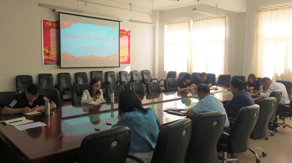 9月17日下午,经济管理学院党总支召开理论学习中心组(扩大)学习会议,会议由党总支书记田维松主持,学院理论学习中心组成员、各党支部支部委员和党小组长参加了本次会议。