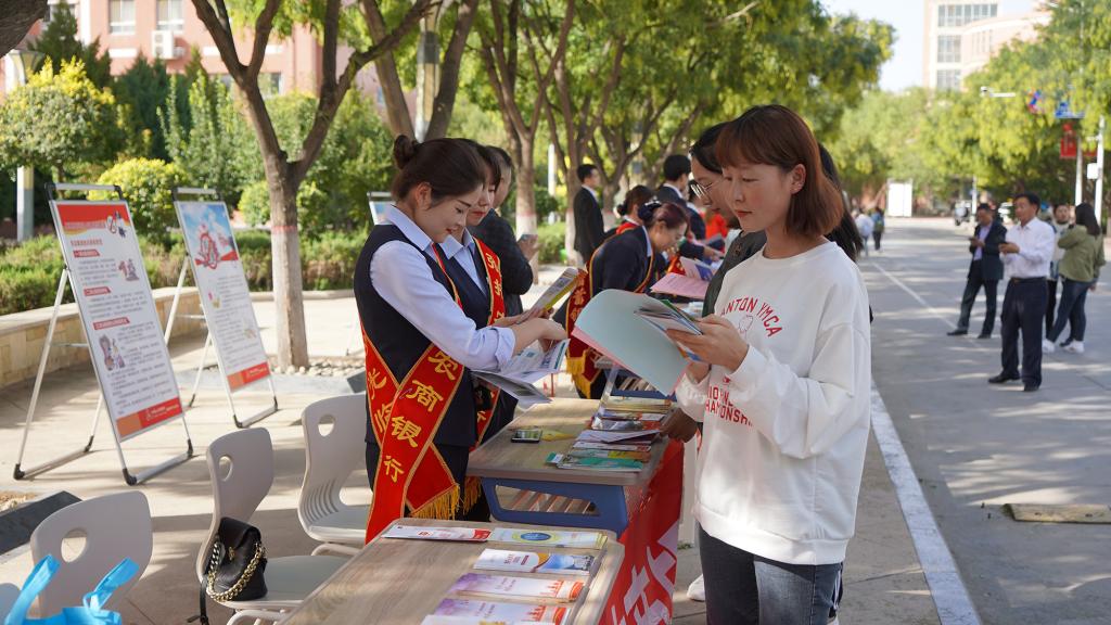 金融知识专题讲座邀请了工商银行张掖分行法律顾问、消费者权益保护及扫黑除恶办公室主任、信贷管理部总经理何长年经济师来校,在学术一厅为同学们作了金融知识专题报告。报告从非法“校园贷”的特征及风险防范 、防范网络诈骗保护自身财产安全、非法集资的危害及相关识别、合理使用信用卡及维护个人信息安全等方面旁征博引,以大量生动的、身边的事例进行了详尽的讲解,并向同学们发出了“树立正确消费观 远离非法’校园贷’的倡议”。金融知识进校园展览邀请张掖多家金融机构,通过摆放宣传展板、发放宣传资料、现场答疑等形式开展。