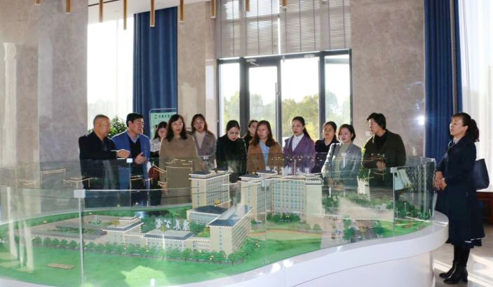孔文康养小镇负责人介绍了康养创新项目实施背景、建设进展、功能定位、营运情况及发展规划。教工党员们实地考察观摩了孔文康养小镇接待服务中心、旅居养老基地、定居康养基地、医养康复运营中心、老年文化娱乐中心、医护及餐饮供给配备情况。