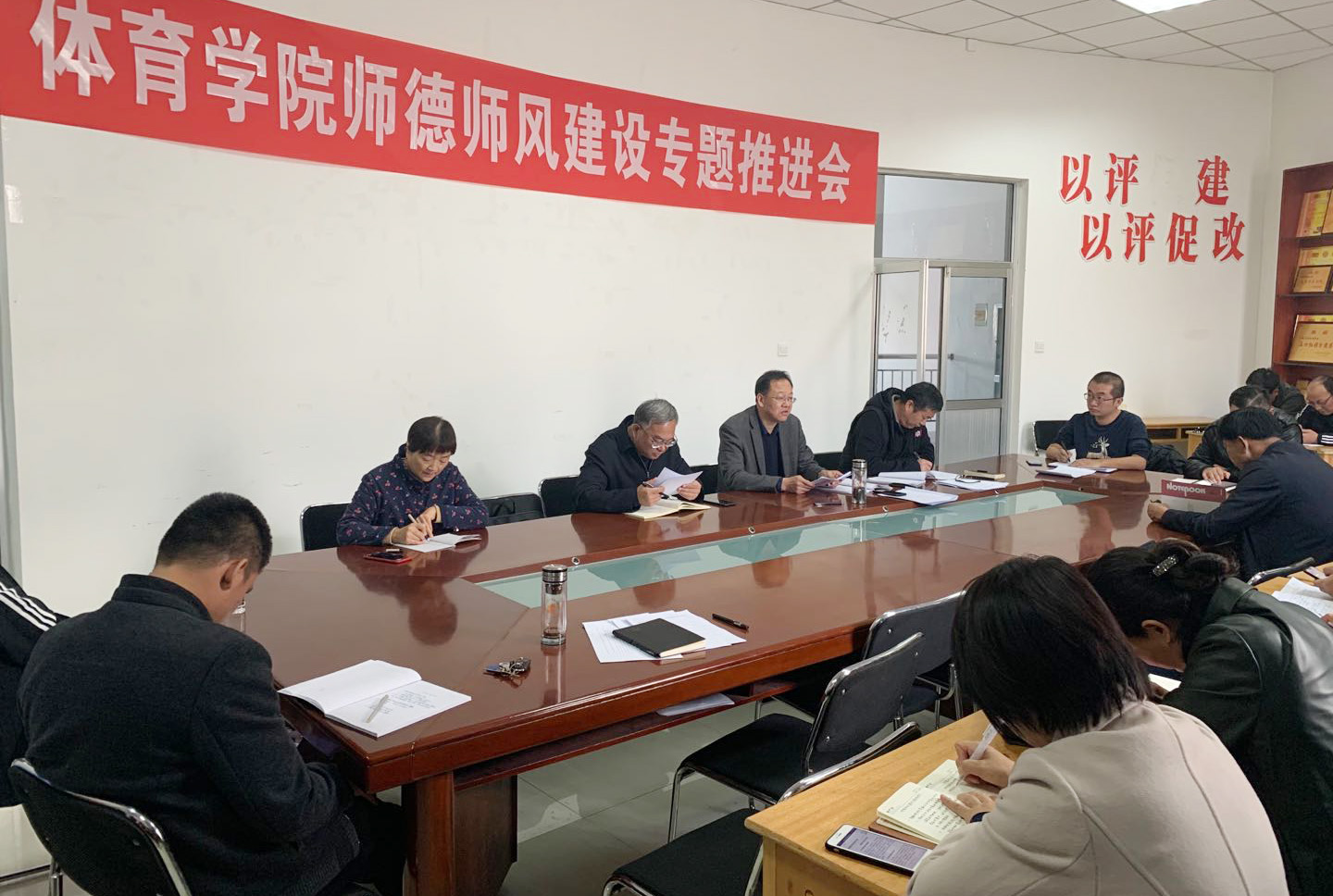 为扎实推进体育学院师德师风建设,落实立德树人根本任务,不断提高教育教学质量, 10月21日下午,体育学院召开师德师风建设工作推进会。党委常委、副校长张勇,教务处负责人及学院全体教职员工参加了会议,会议由党总支负责人主持。