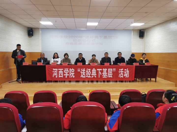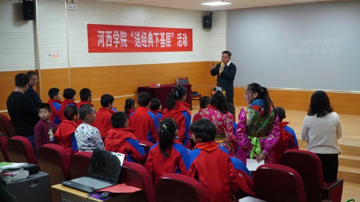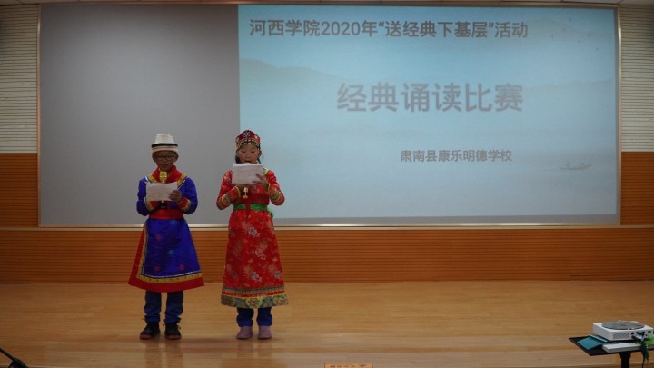 为贯彻落实教育部、国家语委《中华经典诵读工程实施方案》“送经典下基层”活动的要求,大力弘扬中华优秀传统文化,激发少年儿童对祖国语言文字的热爱,全面提升基层学生的语言文字应用能力和综合素质,根据《甘肃省语言文字工作委员会甘肃省教育厅关于组织开展2020年“送经典下基层”活动的通知》精神,学校组建了由省级普通话测试员、语言学和当代文学方面专家、地方史研究专家、国画教师、音乐教师、心理辅导教师组成的“送经典下基层”小分队于10月22日赴肃南裕固族自治县康乐镇明德学校开展了“送经典下基层”活动,明德学校百余名师生及家长参与了活动。