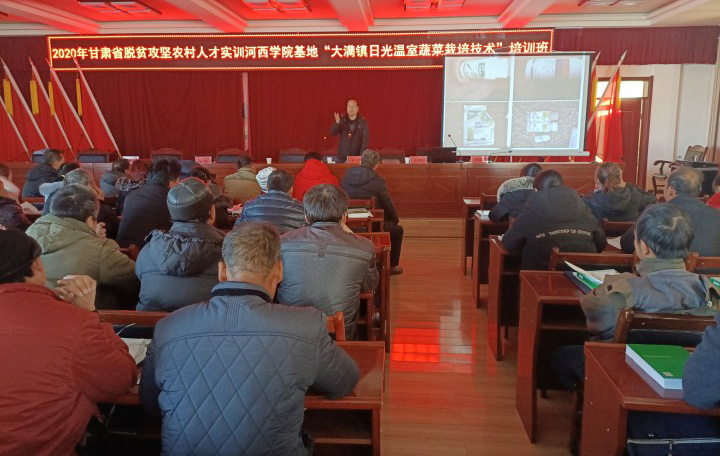根据中共甘肃省委组织部2020年“省级脱贫攻坚农村人才实训基地”培训计划,为了支持甘州区大满镇设施蔬菜产业提升发展,帮助张掖市精准扶贫村大满镇李家墩村脱贫攻坚及什信村、新华村、平顺村巩固脱贫攻坚成果和推进乡村振兴,12月10日至12日,我校在张掖市甘州区大满镇李家墩村、什信村等村举办“日光温室蔬菜栽培技术”培训班,大满镇李家墩村以及什信村、新华村、平顺村等贫困村的建档立卡贫困户和从事日光温室蔬菜栽培的种植户、大满镇扶贫干部共计100人参加了本次培训。