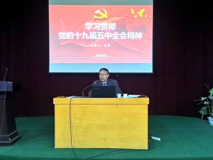 史军从十九届五中全会基本情况、全会主要精神和学习贯彻全会精神推进教育高质量发展三个方面,系统阐述了我国决胜全面建成小康社会取得的决定性成就、我国发展环境面临的机遇与挑战、2035年远景目标和“十四五”时期我国经济社会发展的指导方针、主要目标、重点任务,并结合我校大学生实际情况,分析介绍了学校后期在思想引领、教育管理、就业推进等方面的基本要求和努力方向。