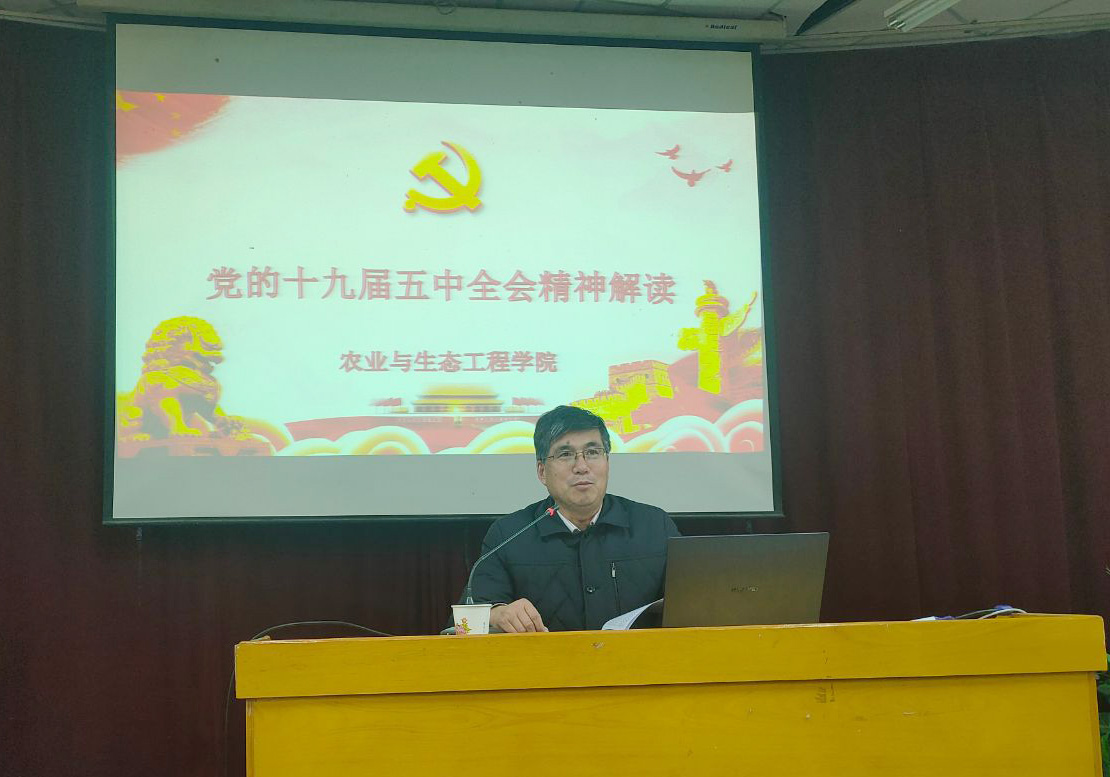 12月19日,农业与生态工程学院召开党的十九届五中全会宣讲报告会,院长雷玉明作了宣讲报告,全院师生共300余人聆听了报告。