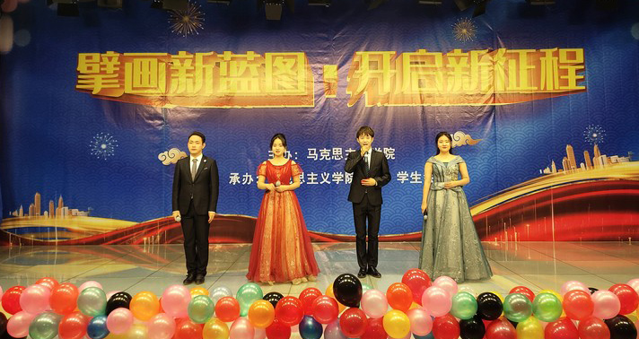 为深入学习宣传贯彻党的十九届五中全会精神,加快推进重点马院建设,办好思想政治理论课,大力唱响中国共产党好,社会主义好,改革开放好,伟大祖国好,各族人民好的新时代主旋律。12月29日,马克思主义学院举行“擘画新蓝图 开启新征程”为主题的元旦晚会,学院全体师生参加了晚会。