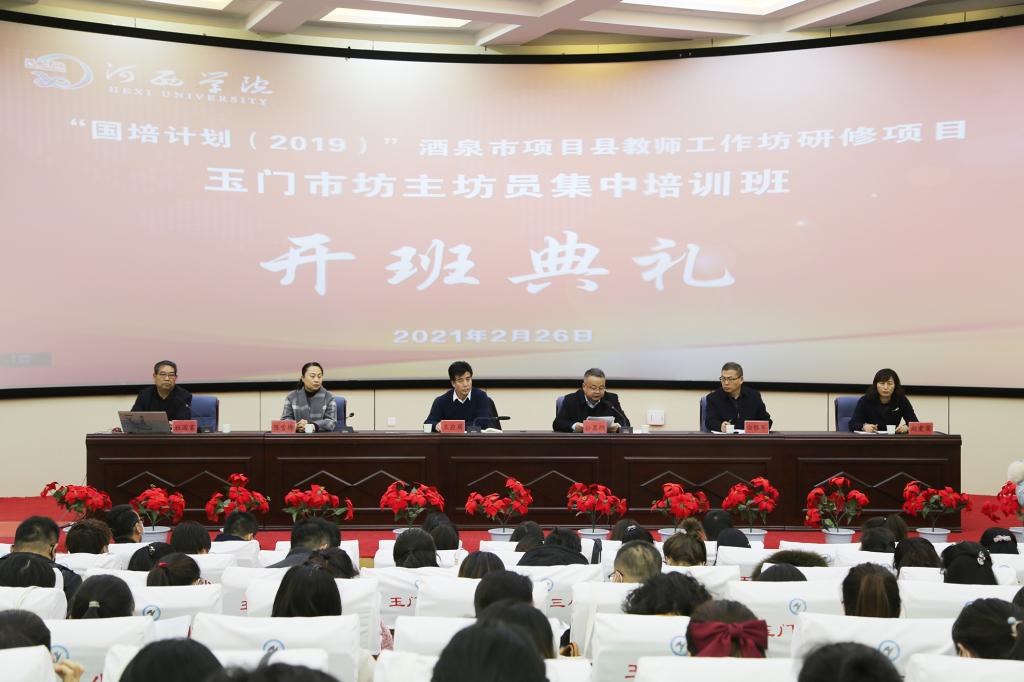 2月26日,“国培计划”— 2019年酒泉市项目县教师工作坊研修项目玉门市坊主坊员集中培训班开班典礼在玉门市第三小学学术厅举行。玉门市教育工委负责人、我校继续教育学院负责人、班主任和全体坊主、坊员参加了开班典礼。