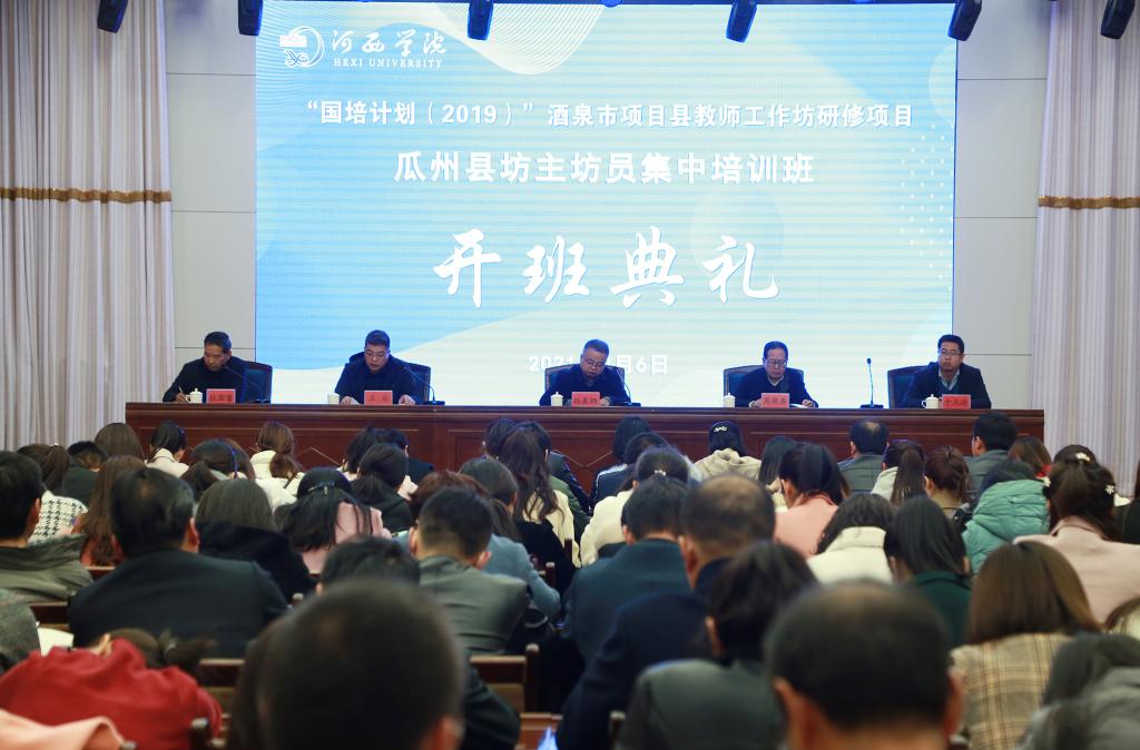 3月6日,“国培计划”— 2019年酒泉市项目县教师工作坊研修项目瓜州县坊主坊员集中培训开班典礼在瓜州县教育科技中心举行。学校继续教育学院、瓜州县教育部门负责人、班主任和全体坊主、坊员参加了开班典礼。