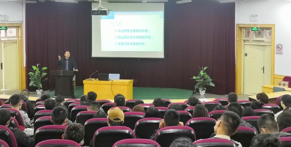 学院相关负责人以近年来历届毕业生遇到的学业问题、就业现状与自我发展等为主线,针对2017级学生可能遇到阻碍学生发展的学业和就业问题做了详细分析与解读,使同学们深刻认识到如何理性的评估自己、如何健康的走向工作岗位。此次主题班会使毕业生提前进入毕业前学业审核与自我评估状态,树立高度的警觉意识,并全身心投入到毕业前的各项学习中。