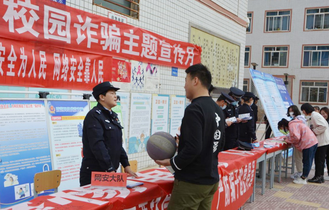 3月25日,学院大学生就业创业协会与学生会权益部举办了海报展览及签名活动。邀请张掖市公安局网安支队、甘州区网安大队近十名警官在学生公寓西侧进行网络安全知识宣传普及,向同学们现场讲解诈骗手法,强调网络交易需慎重,倡导学生防范校园诈骗。
