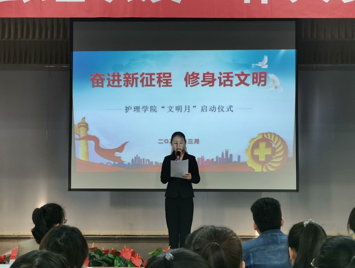 学校第十三届“文明月”活动以“奋进新征程 修身话文明”为主题,把践行社会主义核心价值观贯穿“文明月”活动全过程。在“文明月”活动启动阶段,二级学院围绕庆祝中国共产党成立100周年,以党史“必修课”引导青年学生“学史明理”。马克思主义学院结合党史学习教育,邀请甘肃省思想政治理论课蔺海鲲名师工作室蔺海鲲教授为全院师生作了“明理增信崇德力行”的报告。护理学院引导学生树立良好的班风,营造“争优良学风、创优美环境、争创文明班级、争创文明宿舍、争做文明大学生”的“双优三文明”学习氛围。经济管理学院、文学院等学院以学生干部会议、主题班会等形式,开展了“四早、三带、两展示”的学风建设活动,引导学生养成文明的行为习惯。历史文化与旅游学院、土木工程学院等学院组织创建“科研考研”特色文明宿舍活动,构建良好育人环境。