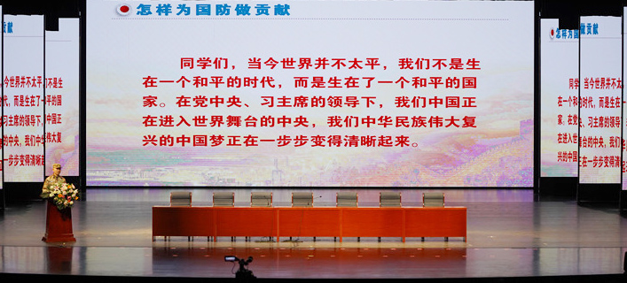 4月30日,学校2021年下半年学生入伍政策宣讲首场报告会在河西讲堂举行。学校武装部、二级学院主管学生征兵工作负责人、辅导员,学生征集对象800多人参加了宣讲会。