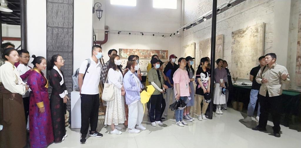 西藏班40名同学依次参观了艺术创意中心、民族文化大道、民族文化长廊、民族雕塑群、民族文化壁画、学校创建全国民族团结进步示范单位成果展、河西历史文化馆;观看了学校创建全国民族团结进步示范单位专题影片。通过参观,同学们了解了党的民族理论政策以及我校创建全国民族团结进步示范单位取得的成效。实践教学活动以党史学习教育为契机,结合“为师生办实事”,学习民族团结历史,讲好民族团结故事,争做民族团结进步模范,铸牢中华民族共同体意识。
