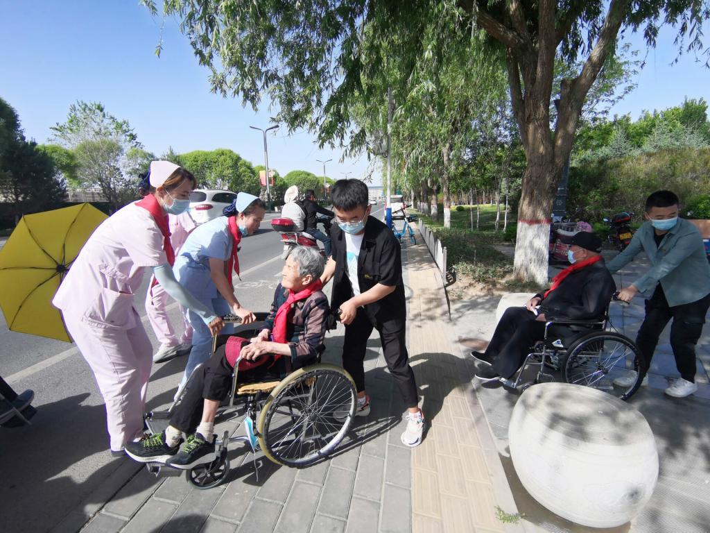 活动中,大家主动陪老人们谈心,拉家常,询问老人们的身体状况,积极开展志愿服务活动。由于受到去年全球疫情的影响,老人们已经长时间没有离开养老院,在和老人们沟通交流后,志愿者们推着轮椅,在养老中心工作人员的陪同下,带领老人们前往“芦水湾”生态公园,领略张掖优美的大自然风光。老人们在学生党员和志愿者的陪同下穿越了芦水湾,之后,学生们将老人安全送回养老中心,整个活动持续了一上午。